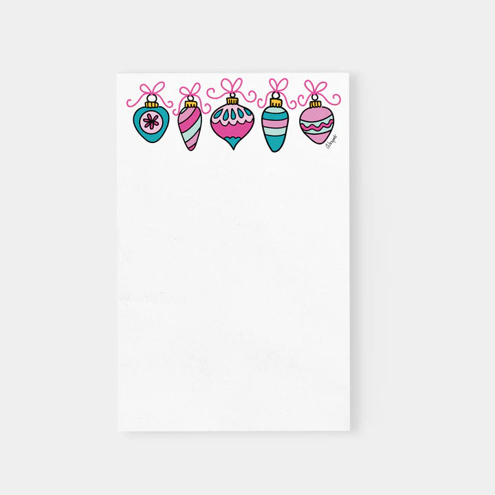 Merry & Bright Pink Bow Christmas Ornaments Notepad