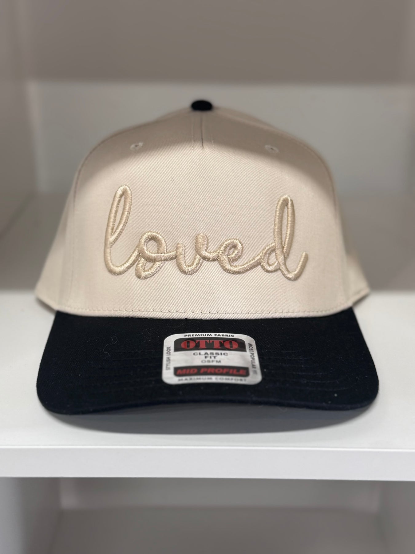 Celebrate love in effortless style with the Blushing Stitch “Loved” Hat. Featuring bold 3D embroidery that reads Loved, this hat pairs a warm tan crown with a sleek black bill for a timeless yet statement-making look.